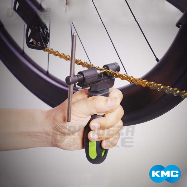 Con su mango ergonómico, la remachadora de cadena KMC Chain Tool Pro es la herramienta ideal para acortar cadenas de 1 a 12 velocidades.