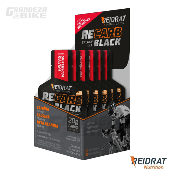 Recarb Enegy Gel Black con Taurina, Cafeína y Beta Alanina es un producto que destaca por su ganancia de rendimiento en actividades de alta intensidad y larga duración. En su composición tenemos varios carbohidratos, que tienen la función de aumentar la absorción de energía y neuroestimulantes que actúan para reducir la fatiga durante las actividades físicas. También en su fórmula tenemos sodio y potasio que actúan como reponedores de los electrolitos perdidos a través del sudor, contribuyendo así a la hidratación del organismo. Además, contiene cafeína y taurina, que aportan al deportista el impulso necesario para obtener un alto rendimiento en sus actividades.